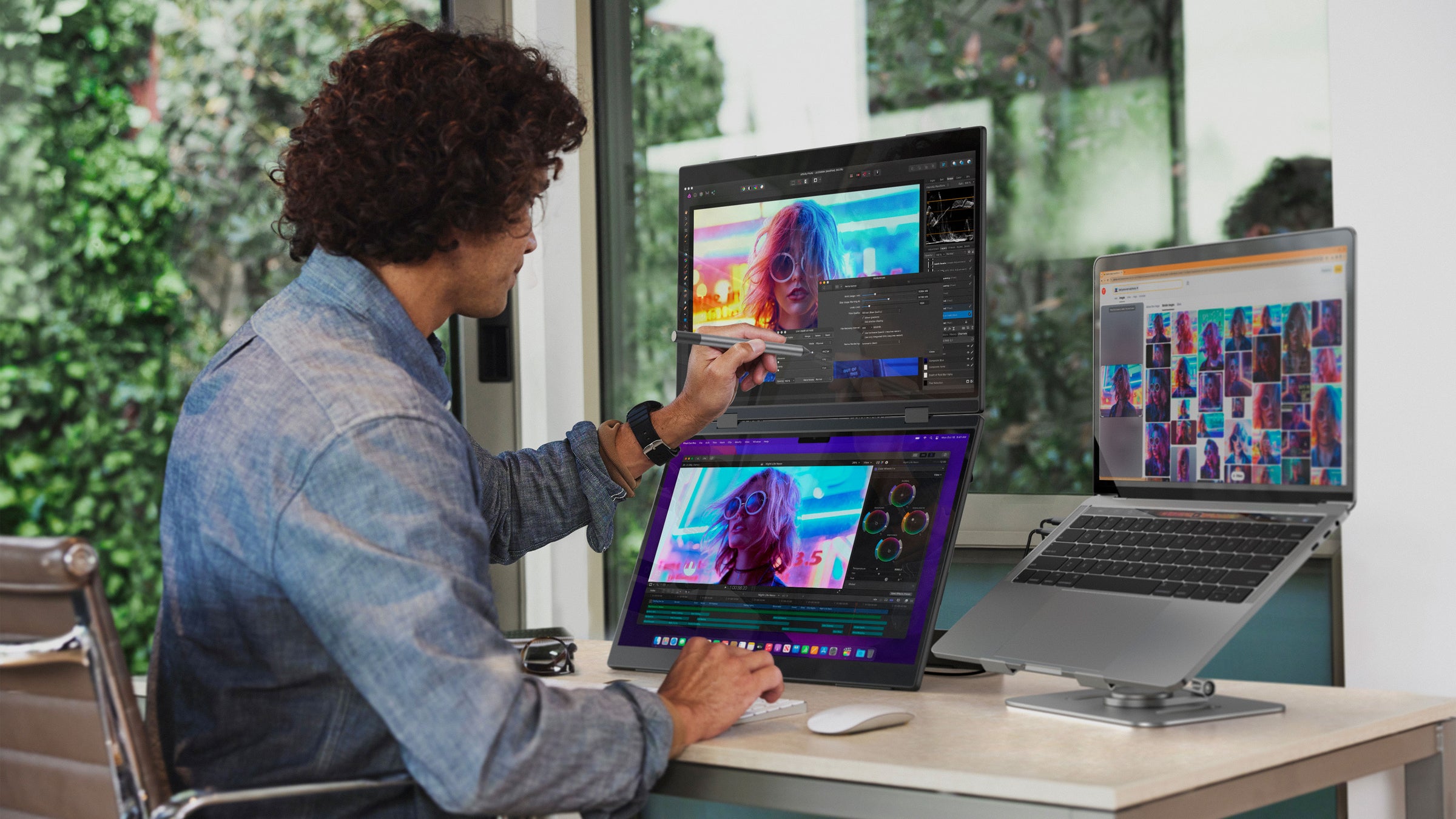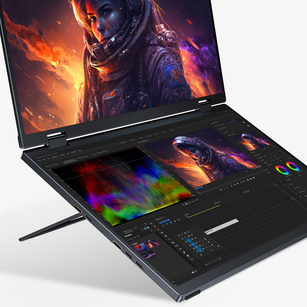 Um monitor de pilha dupla adota duas telas dobráveis que expandem idealmente o espaço da área de trabalho dos laptops e são convenientes para personalizar a estação de trabalho, trazendo um processamento mais eficiente e diversificado para a área de trabalho. Ajuste livremente o ângulo da tela, permitindo que os usuários olhem para a tela com a melhor visão e aliviem a fadiga do pescoço.